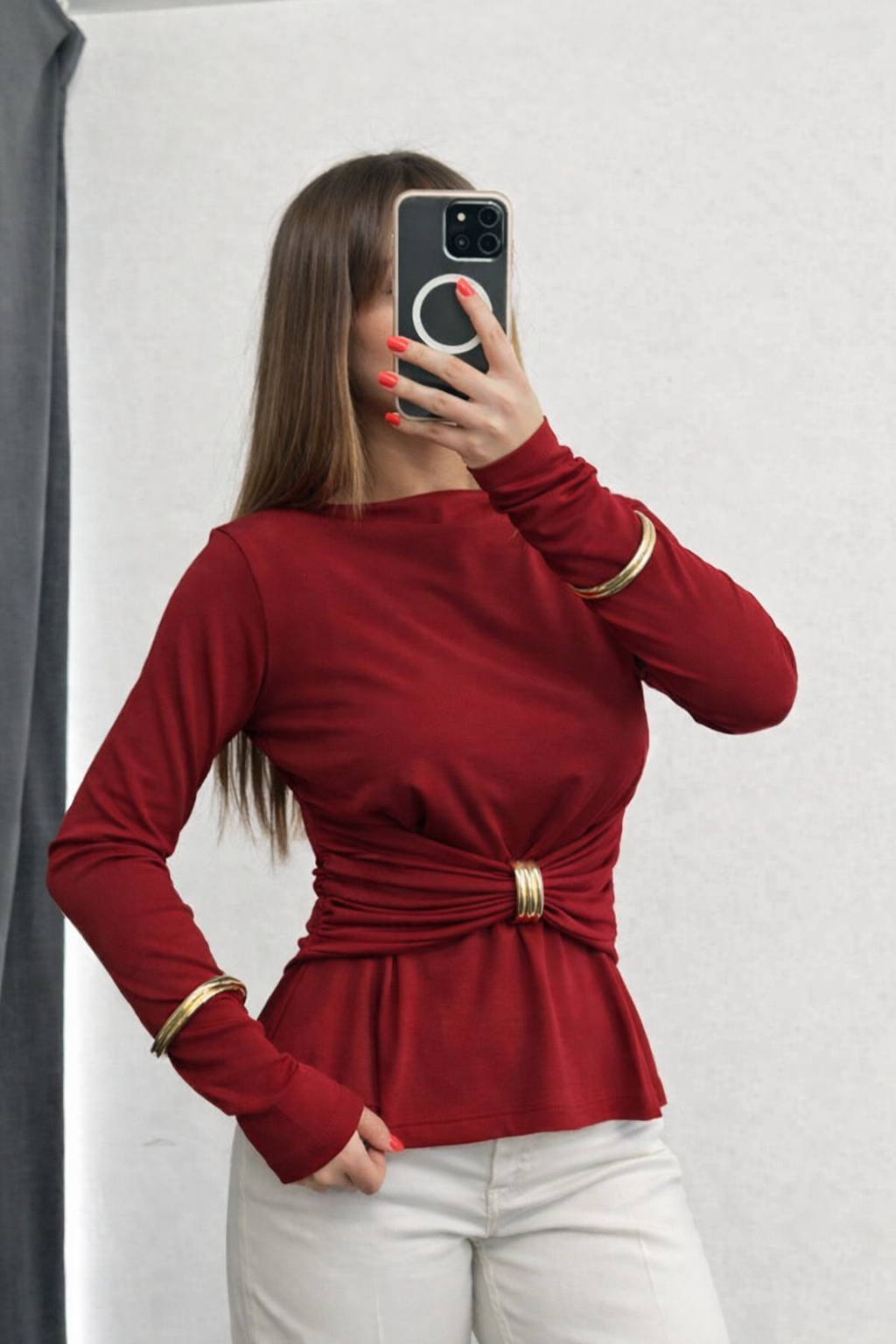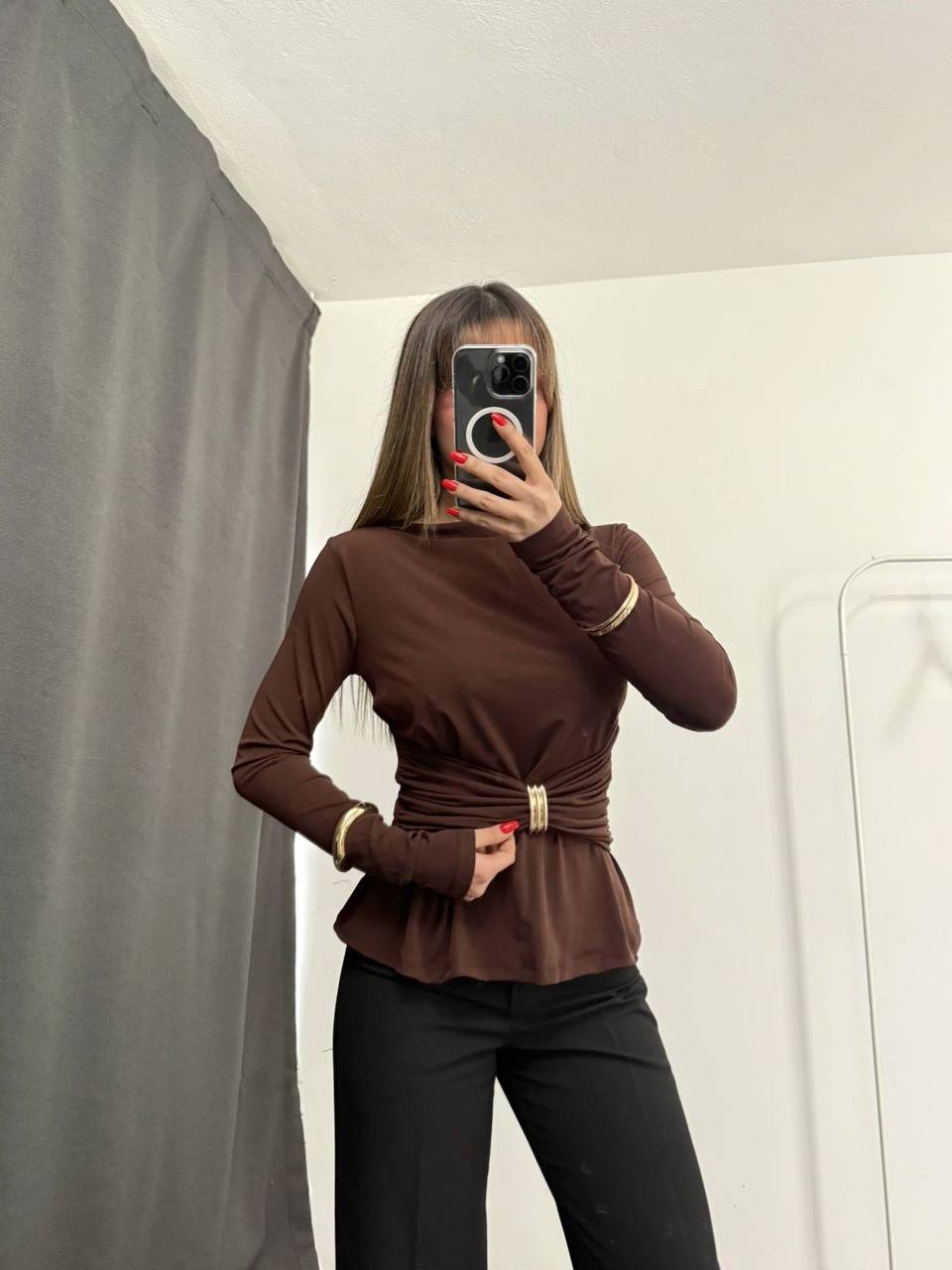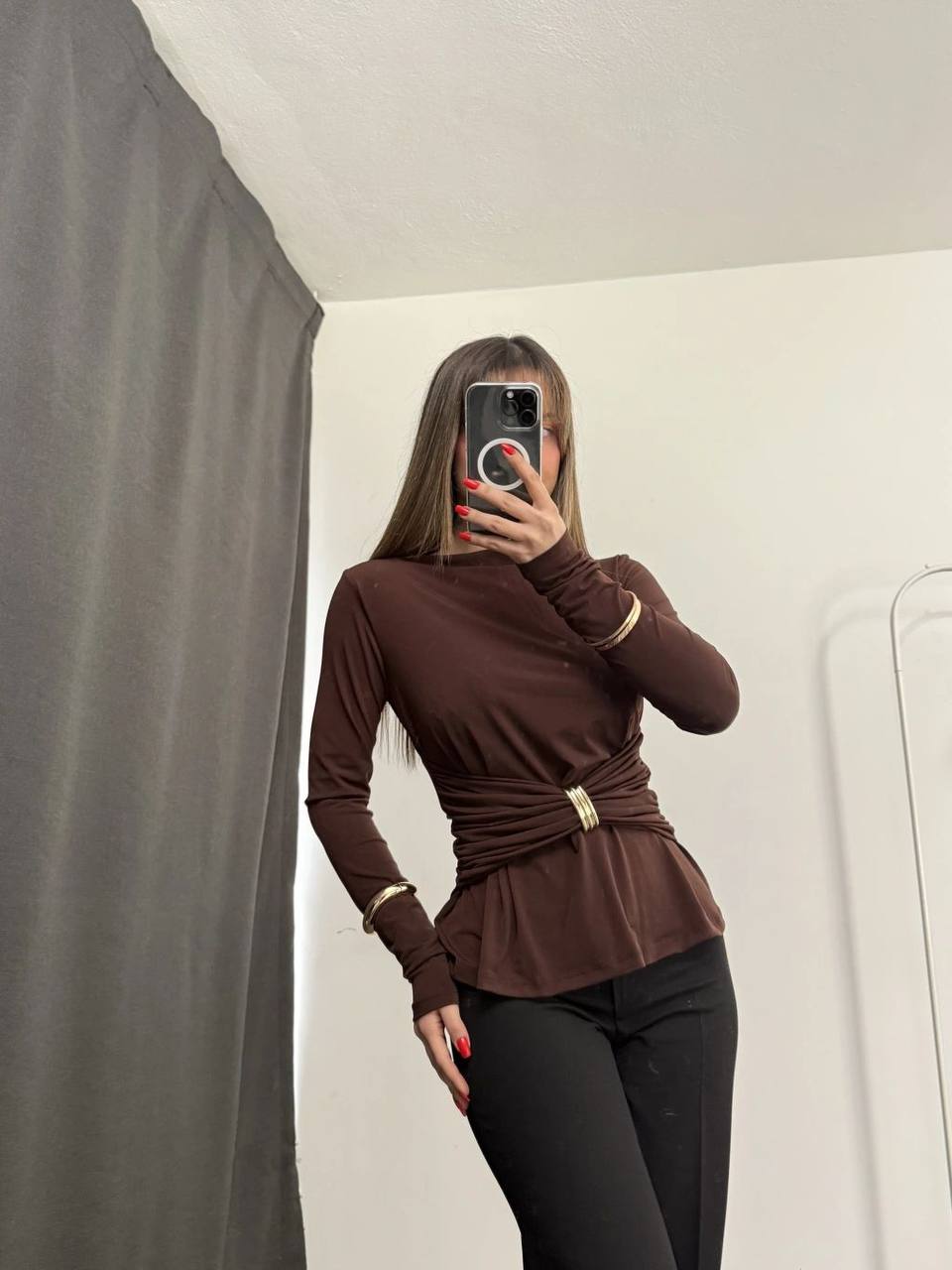 بلوزة بودي قطن مع حلقة دهبية