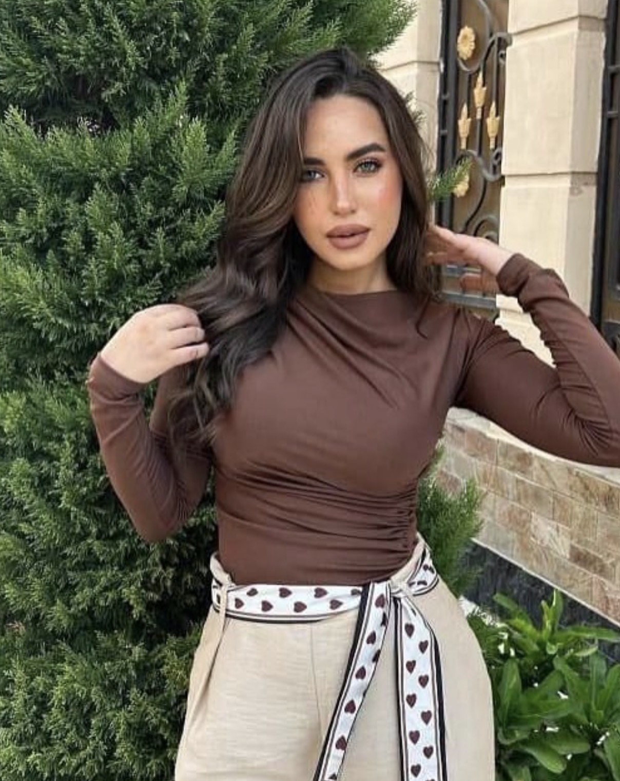 بلوزة قطن زمة بالقبة والخصر