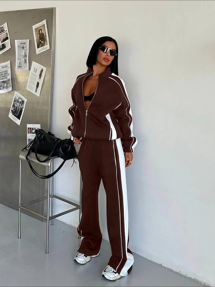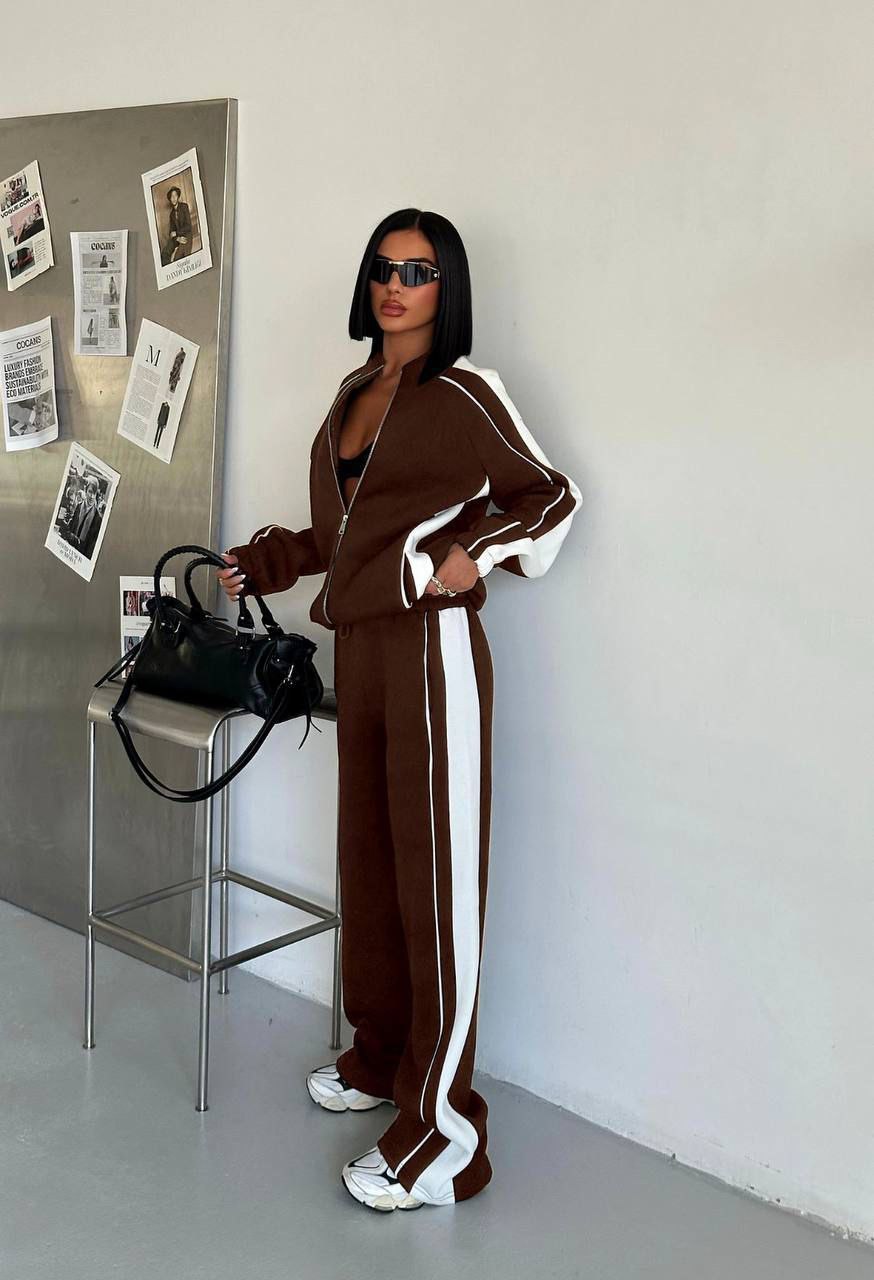 تريننج قطعتين اوفر سايز باللون البني والأبيض