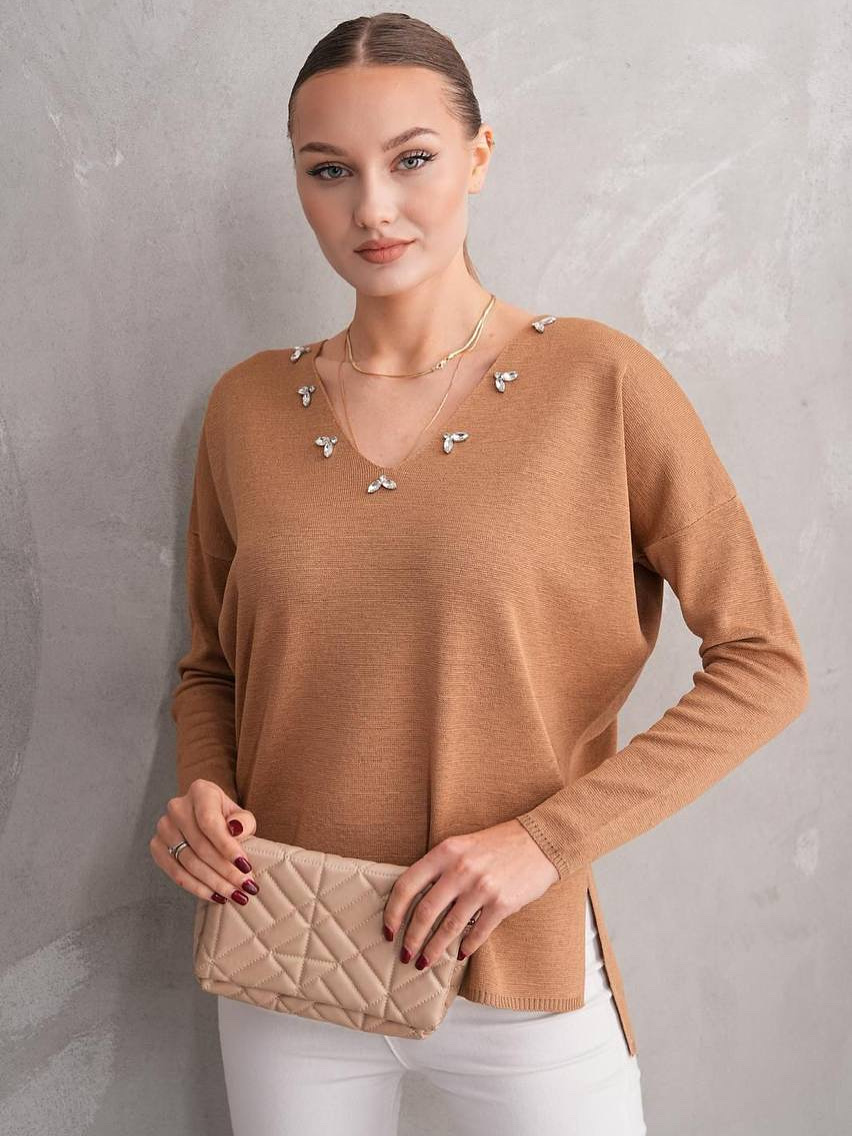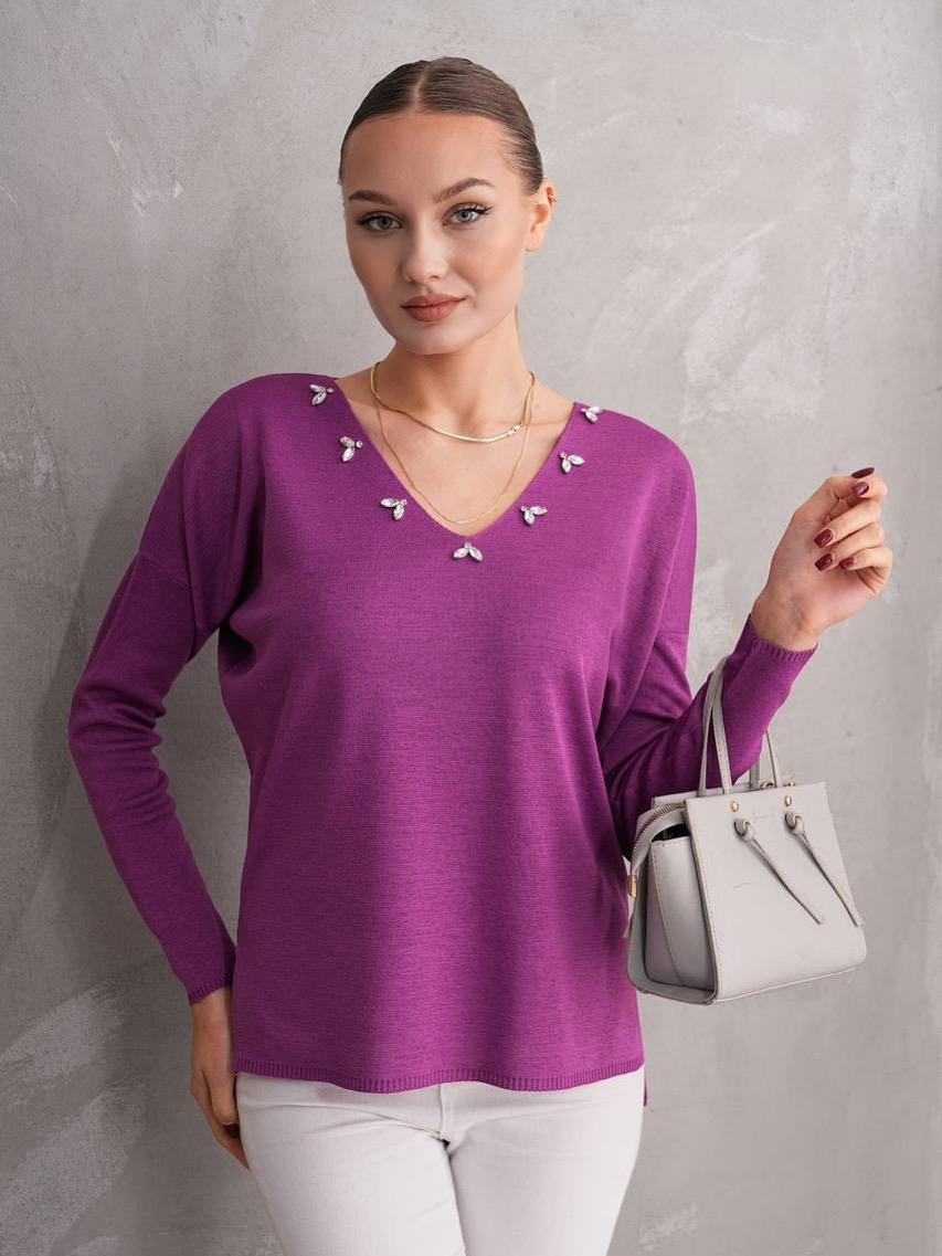 بلوزة ربيعية قبة مع كريستال بيج/بنفسجي/أسود