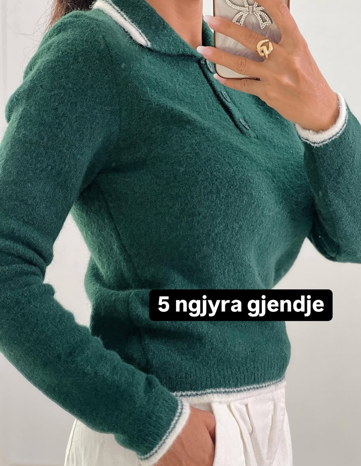 بلوزة صوف باللون الأخضر مع قبة