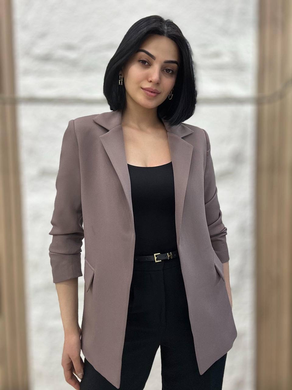 بليزر مع زمة ايد وجيبة شكليّة بلون الشوكو