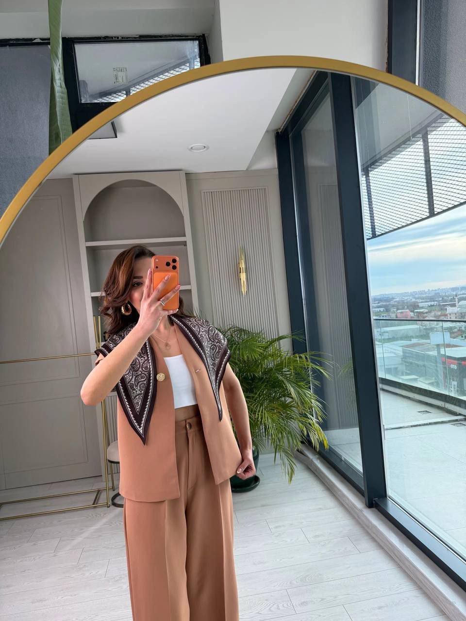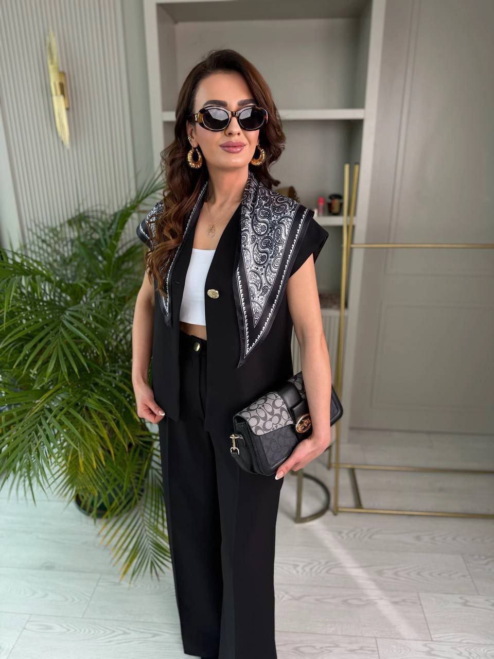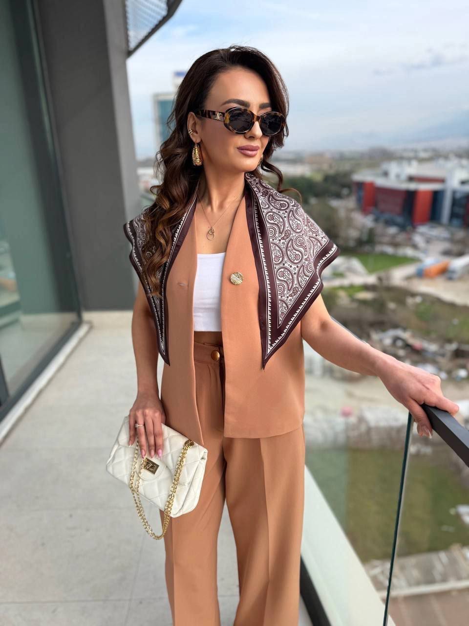 ازرار ذهبية/ مقاسات واسعة/ مع السكارف/ فيست مبطن/بنطلون زر