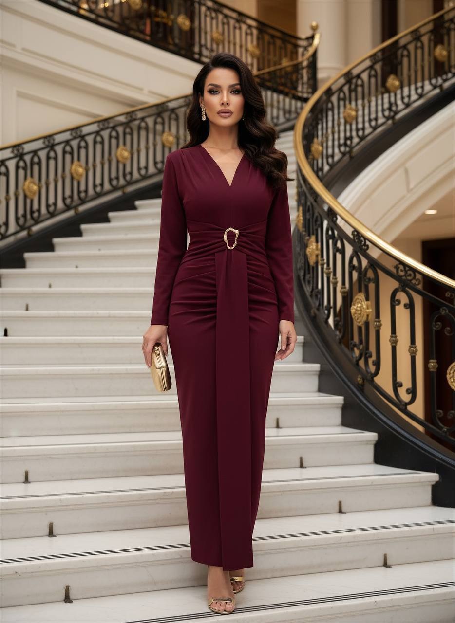 فستان برجندي مبطن رسمي