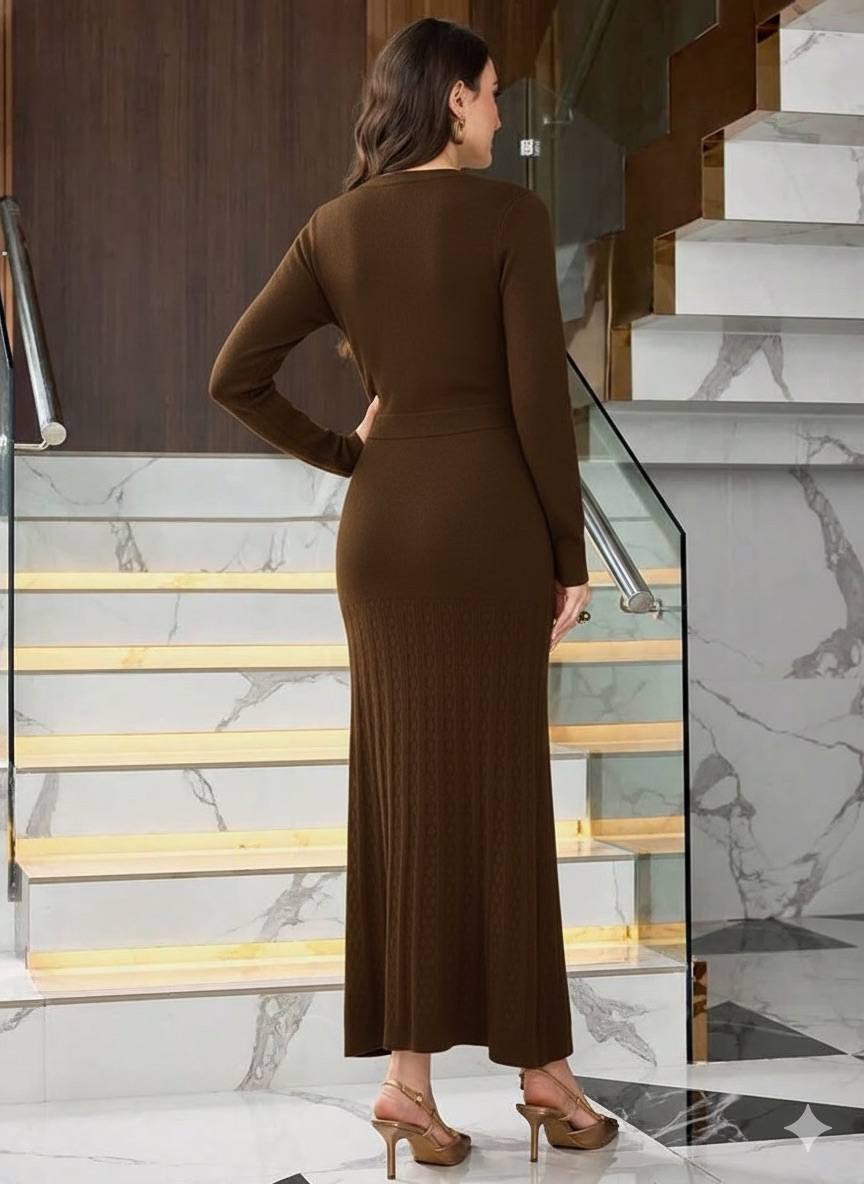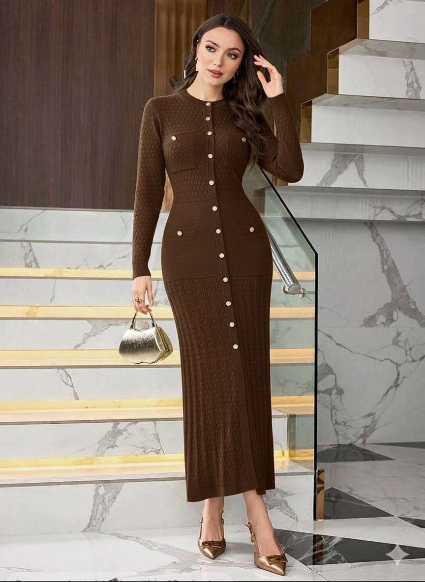 فستان صوف بني بأزرار